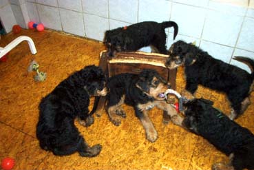The 8th week has started. How every Monday were we weighed (5000 -- 3780 grams) again because of the "worming treatment"? If the sun shines we may rage outside every day now.